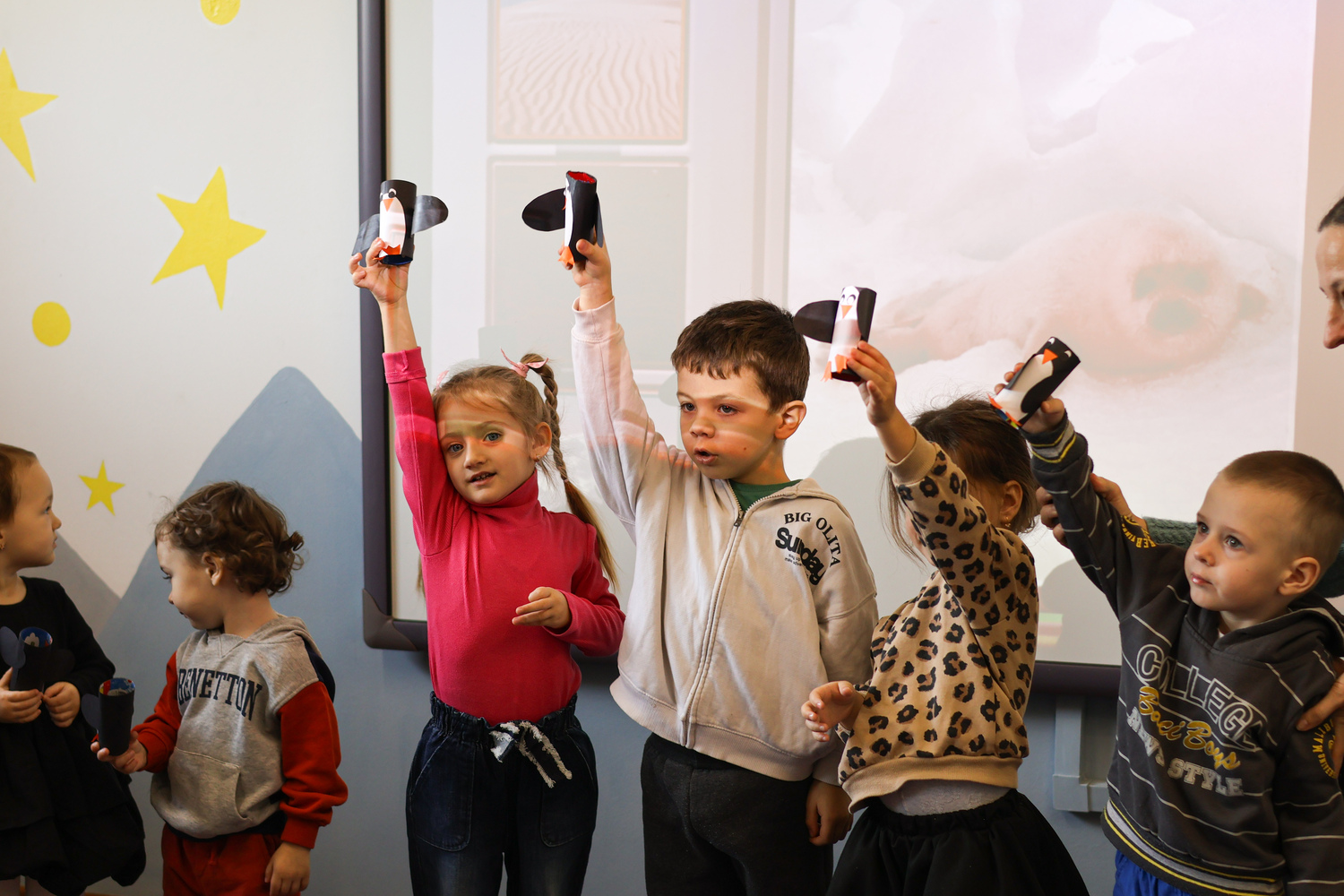 Copiii mai timizi se adaptează treptat, cu sprijinul educatorilor noștri. Începem cu perioade scurte de participare și le creștem gradual, în funcție de cât de confortabil se simt, astfel încât fiecare copil să se integreze în ritmul său propriu.